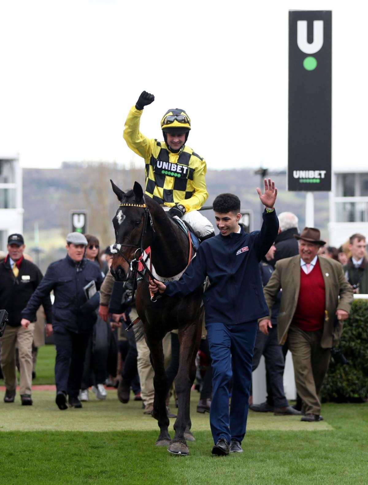 De Boinville said: “It wasn’t a very nice experience, if I am honest. It was never ideal. These false starts aren’t easy to handle; it’s very hard to get a position exactly where you want to be. But then we got a nice position and then going down to that downhill hurdle he’s just had a grab at it and I’ve landed on all fours, really. From then on down the back it is really hard work – I’d say it is almost on the heavy side. It rode like that on him, anyway. It was a very rough race. I got shuffled back; I got switched out wide just to try to get him travelling, give him a bit of light and a bit of comfort in himself. Then the horse fell in front of me and nearly knocked me over. Then it was just a case of trying to pick up the pieces. Everything that could go wrong did go wrong. It just shows what a fantastic horse this is going forward. He has got so much ability. He is so talented. He has tremendous gears and got out of an awful lot of trouble. Wherever he goes next season, it might be that we’ve found another really good one.