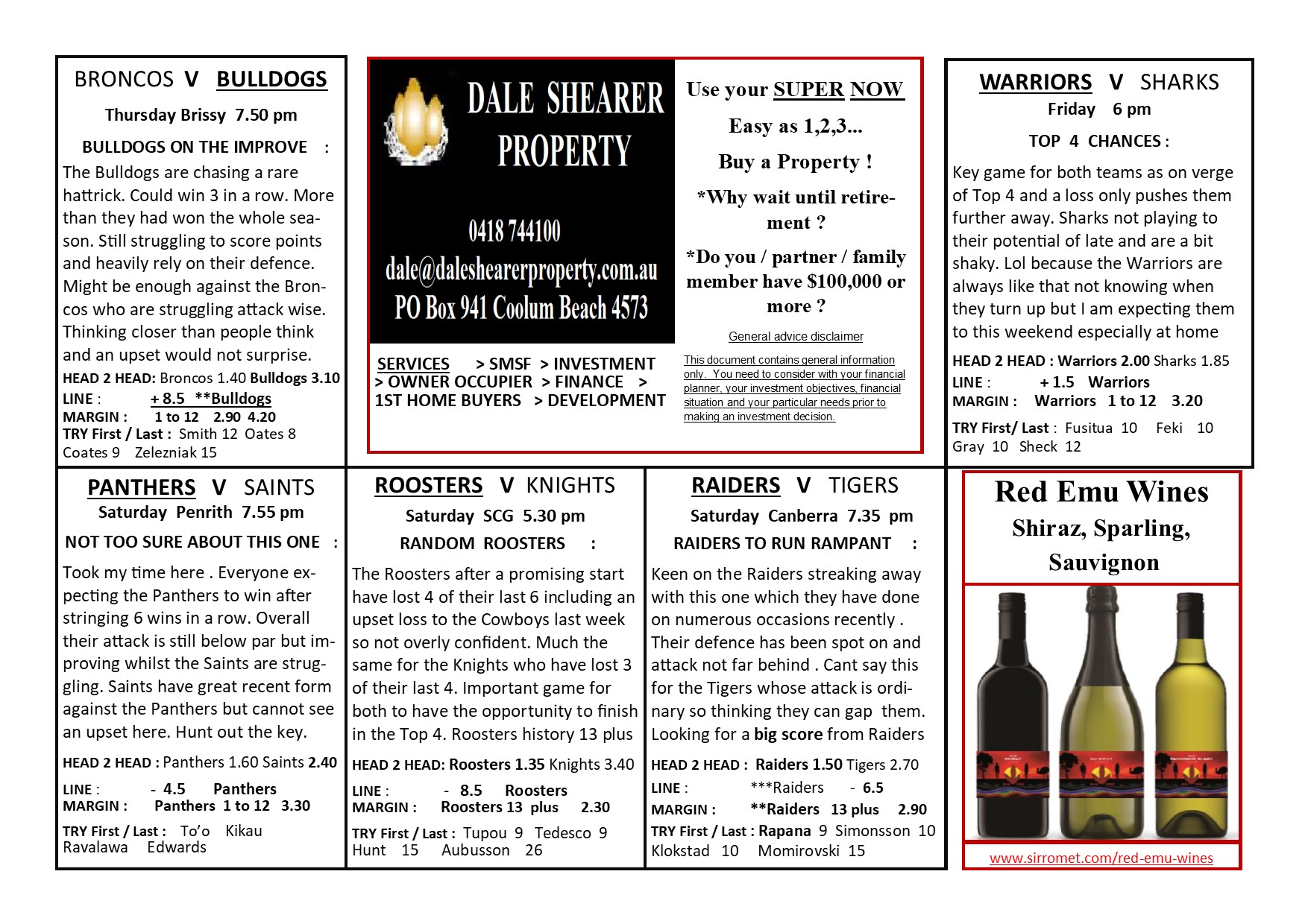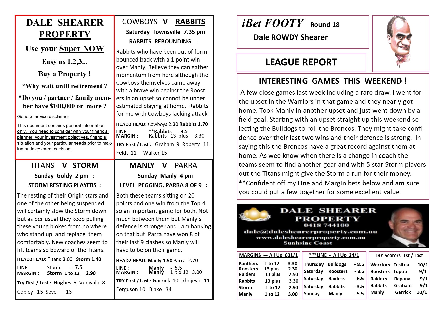 Rugby League » NRL Round 18 Preview by Dale “Rowdy” Shearer NRL Round 18 Preview by Dale “Rowdy” Shearer