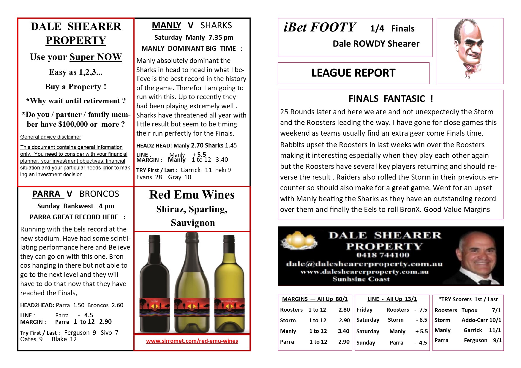 Tips » NRL Finals Week 1 Preview by Dale “Rowdy” Shearer NRL Finals Week 1 Preview by Dale “Rowdy” Shearer