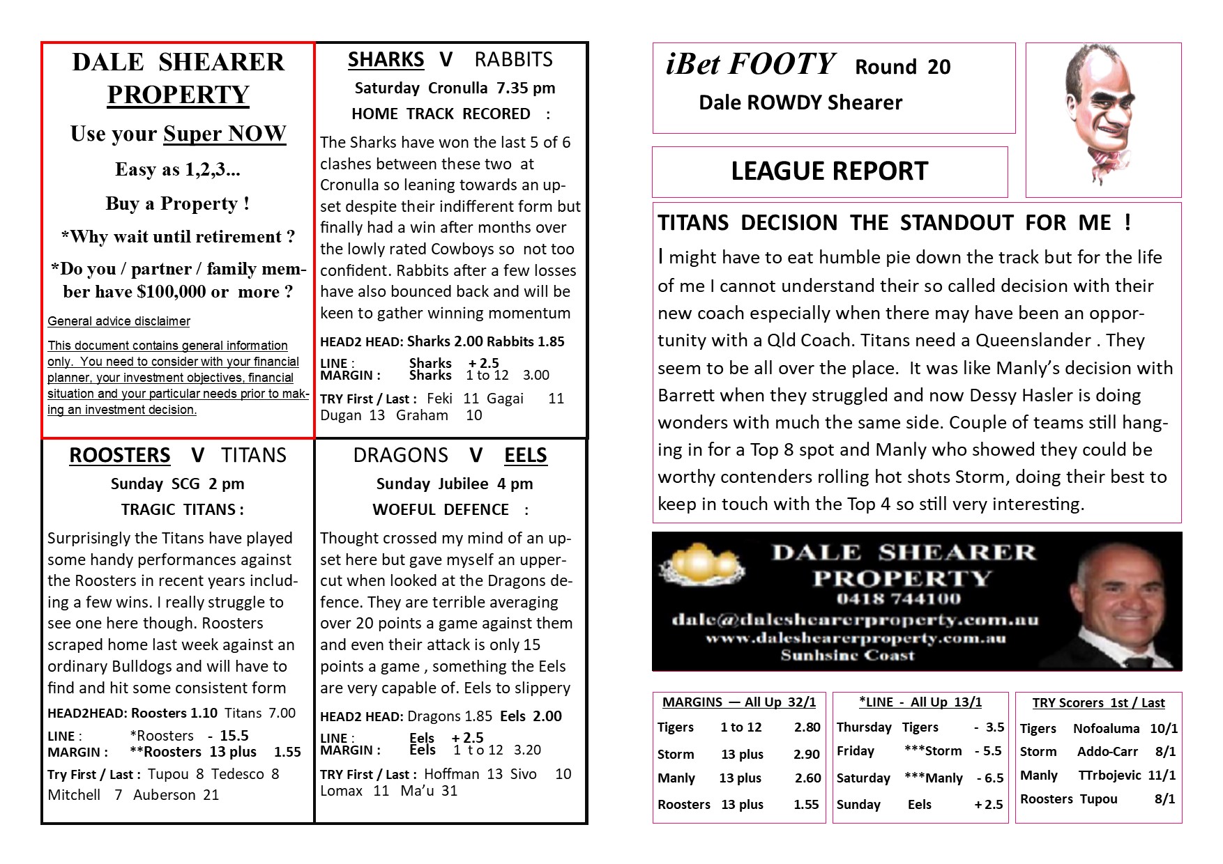 NRL Round 20 Preview by Dale “Rowdy” Shearer